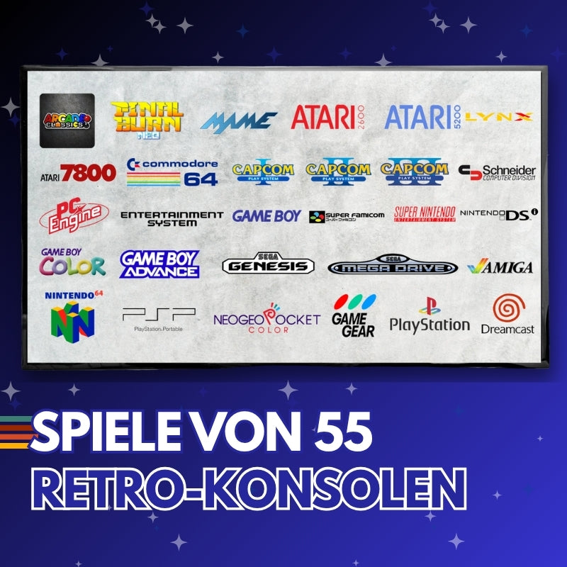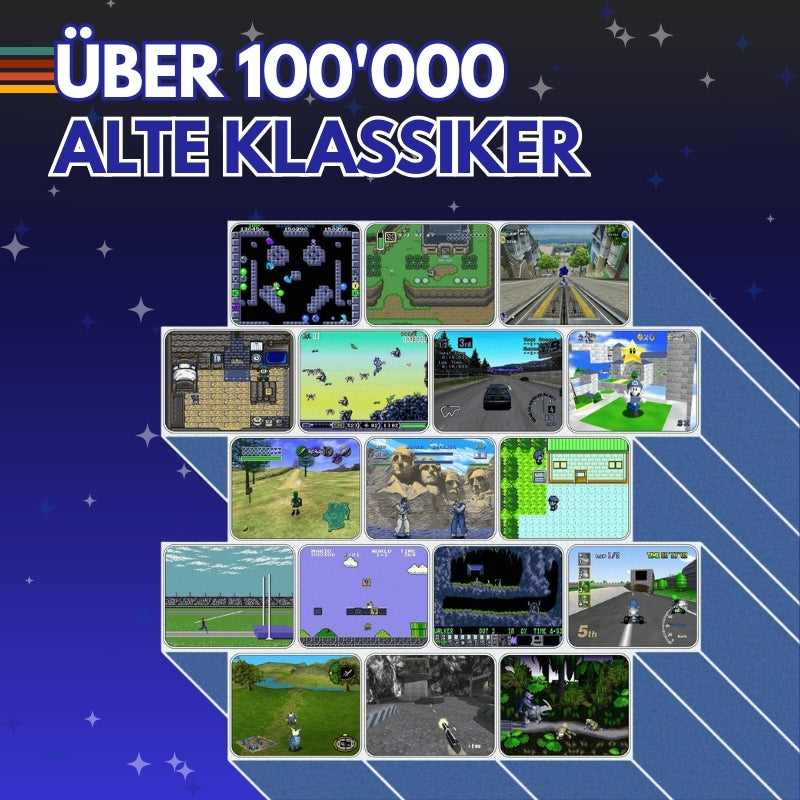 Tauche ein in die Welt der Klassiker, von den legendären Atari Spielen bis hin zu deinen Favoriten auf der PS1. Entdecke unsere vollständige Spieleliste und stöbere nach den Perlen deiner Kindheit. Finde all die Spiele wieder, die dir einst so viel Freude bereitet haben!