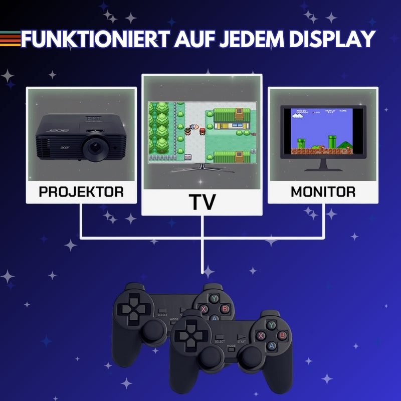 Mit zwei kabellosen Controller wird dein Wohnzimmer zur Retro Gaming Arena. Veranstalte unvergessliche Mario Kart Abende mit deinen Freunden oder zeige deinen Kindern die Spiele, die dich geprägt haben.